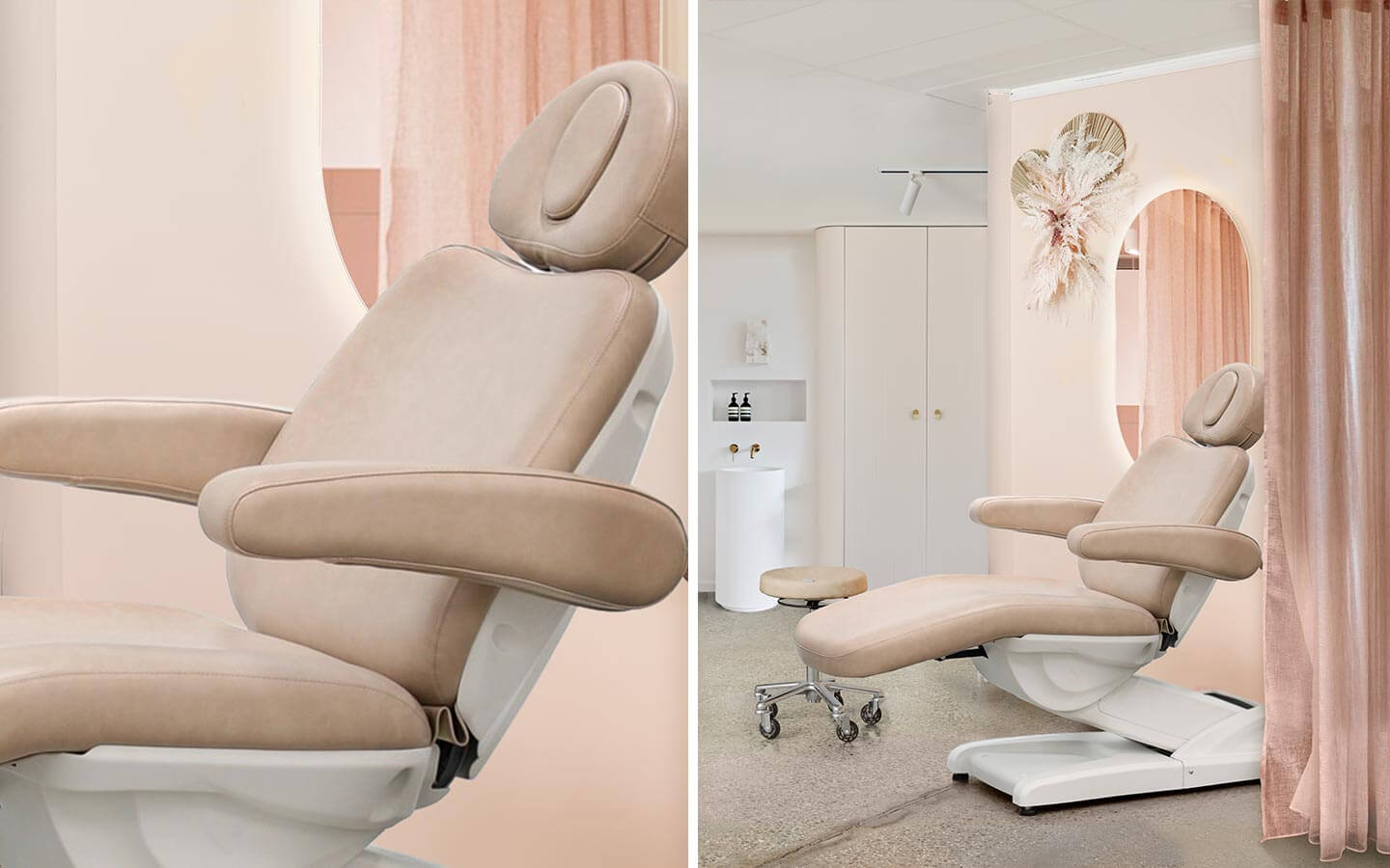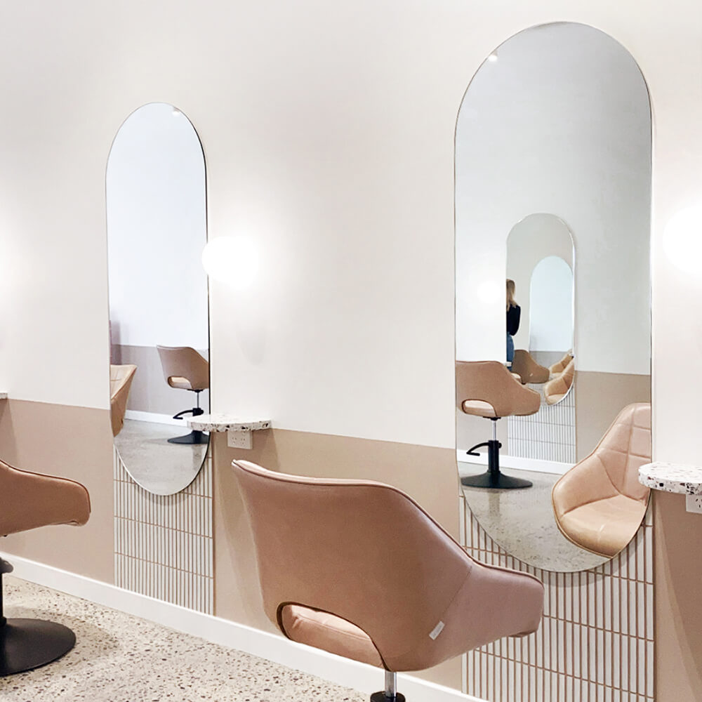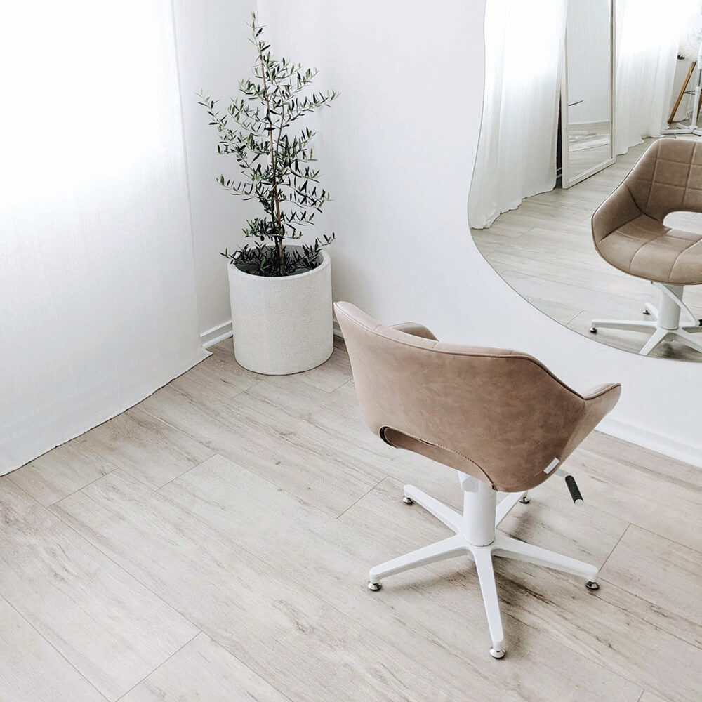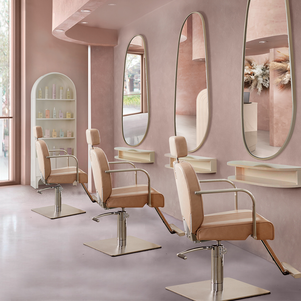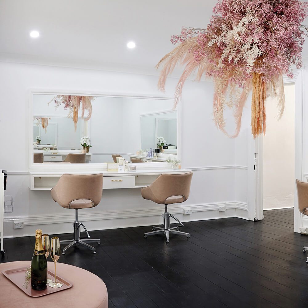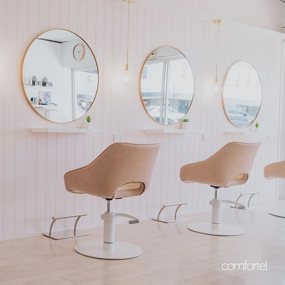 Layered with contemporary furniture in our signature blush upholstered, glossy whites and a touch of metallic luxe for contrast, this salon design will become the perfect haven of femininity. And an instant Instagram fave.