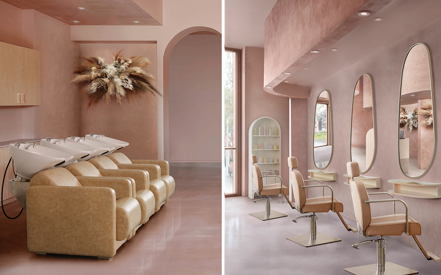 Discover the Beautiful Blush Salon Style, a realm where soft elegance, chic design, and pretty accents reign supreme. This salon design inspiration highlights the versatility of blush tones, creating an inviting ambiance that beautifully intertwines femininity and tranquility.