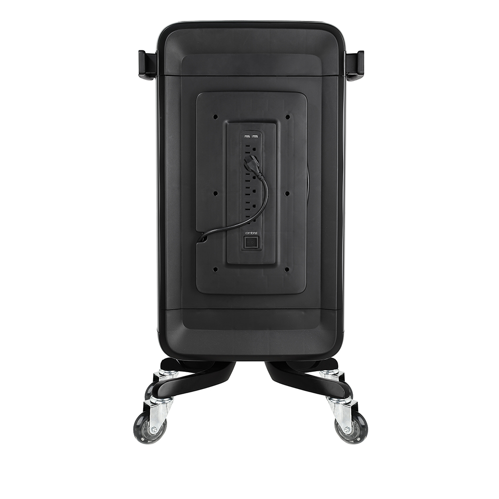 With Personal Power & USB, mova is a unique trolley that allows you to operate your electrical tools from the back of trolley. With only one electrical cord plugged into the wall that controls the power, multiple tools can be used (behind the chair) and no longer at the wall.
