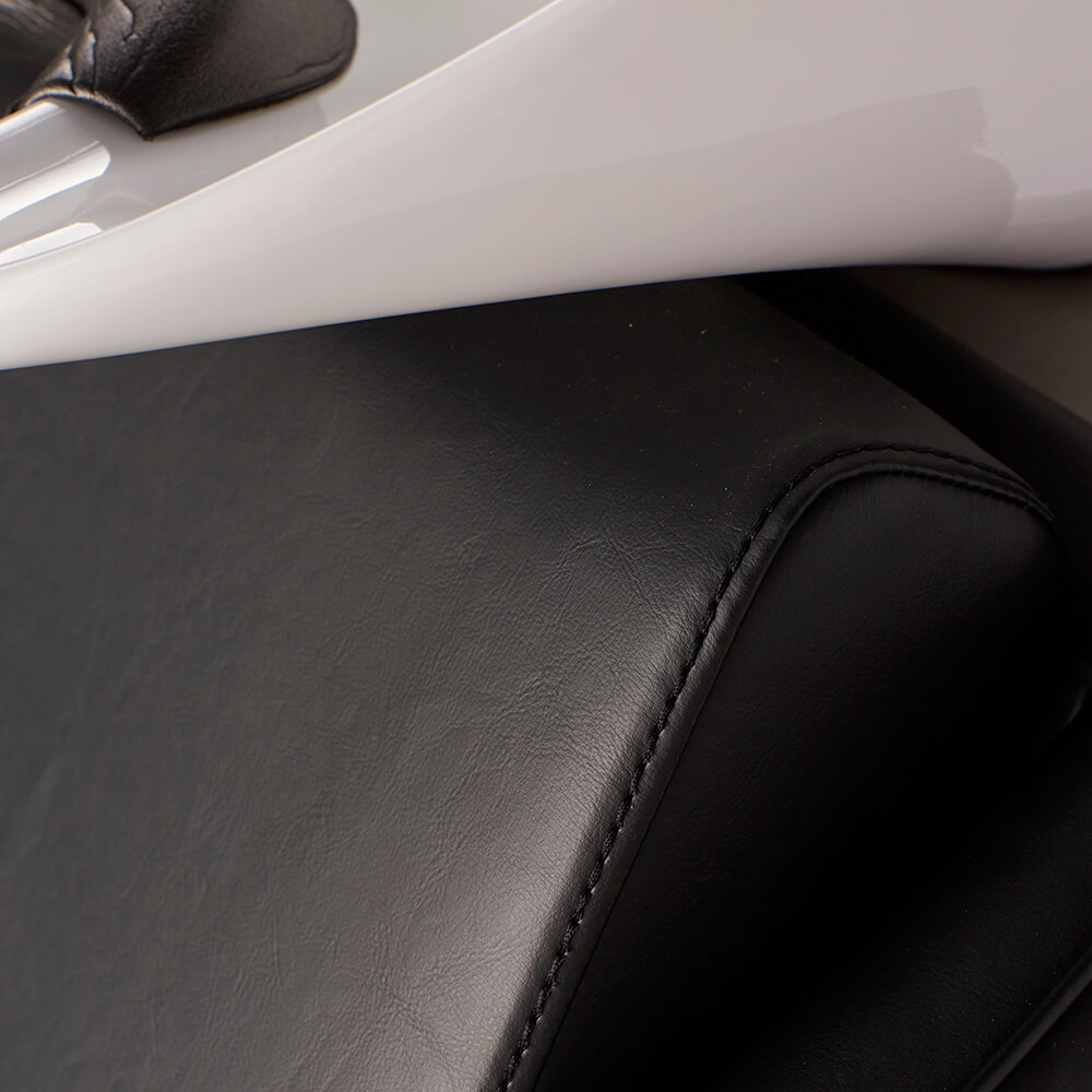 For salons looking for bold, affluent salon furniture, the compact design completes the look. An all in one design with cutaway basin, no matter which way you look at it Hazel is striking from every angle. Did we mention it can come with a matching ottoman as an optional upgrade? Add a little more comfort and let your clients put their feet up!