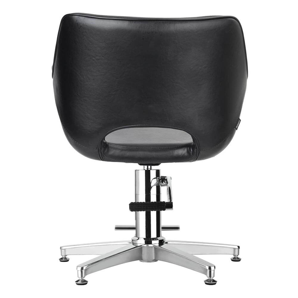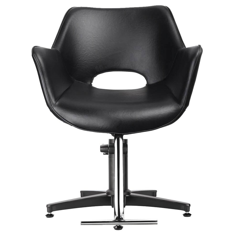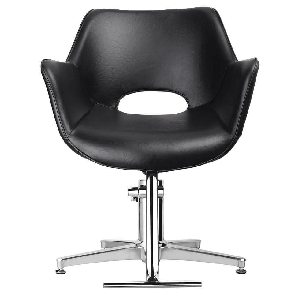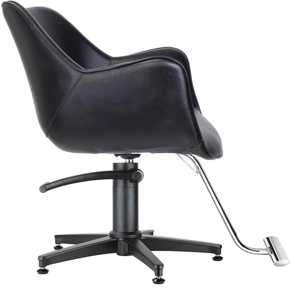 A winged arm hairdressing salon chair, with a retro twist. With curved lines and angled arms, the Chloe is a 60s inspired take on the classic wing chair design. With detail piping and round bucket seat, it is a retro twist on sophistication.