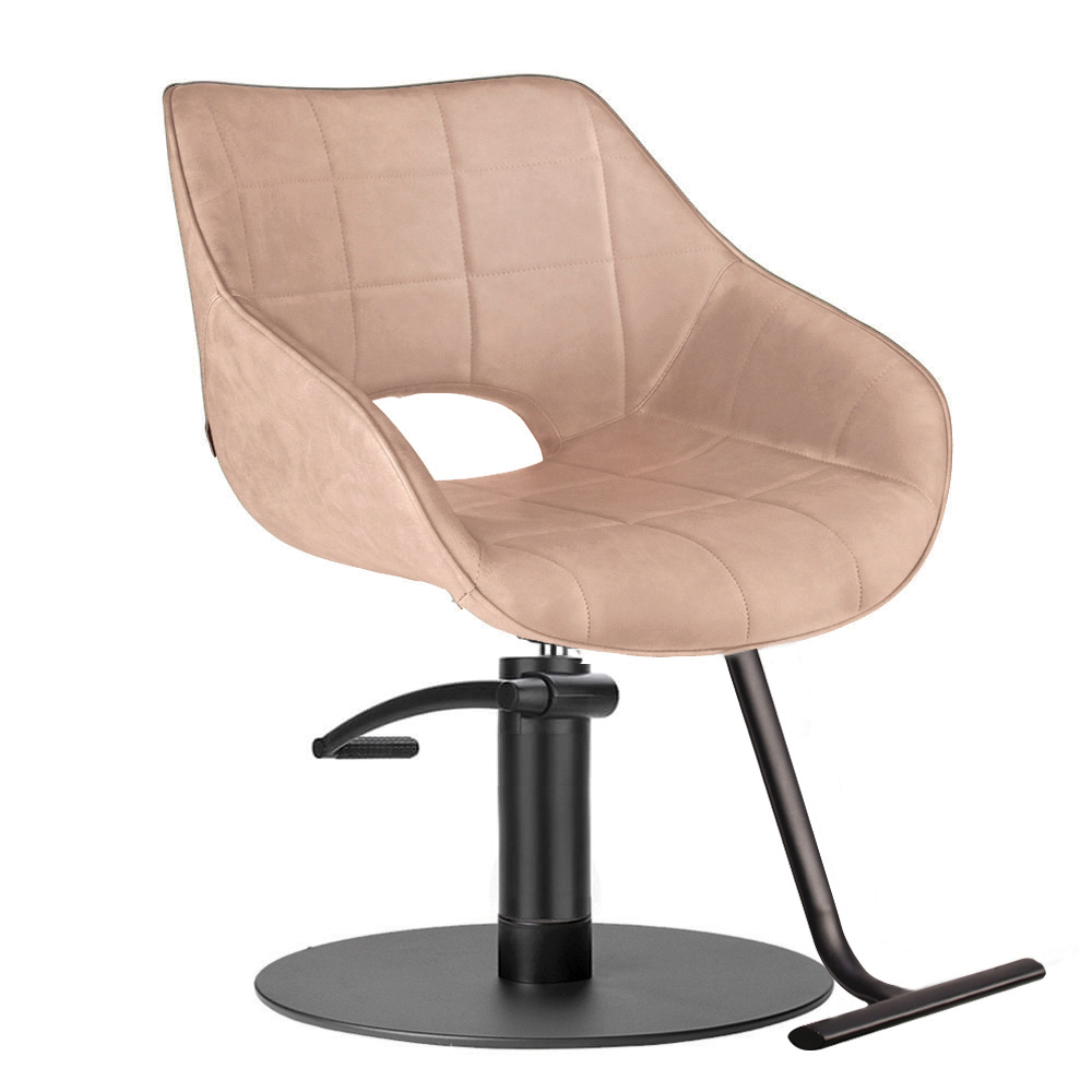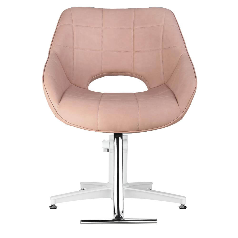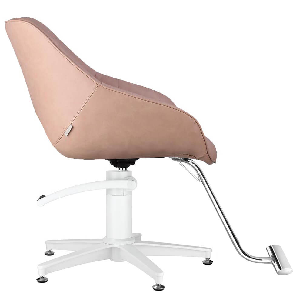 A fresh take on a bucket style hairdressing salon chair. Inspired by 50’s and 60’s century curved lines and detailed stitch. In our Blush upholstery, this round bucket seat has a minimal contemporary style for anyone wanting a feminine look to their salon. The seat integrated with the back and lower arms make for a fresh, clean look.