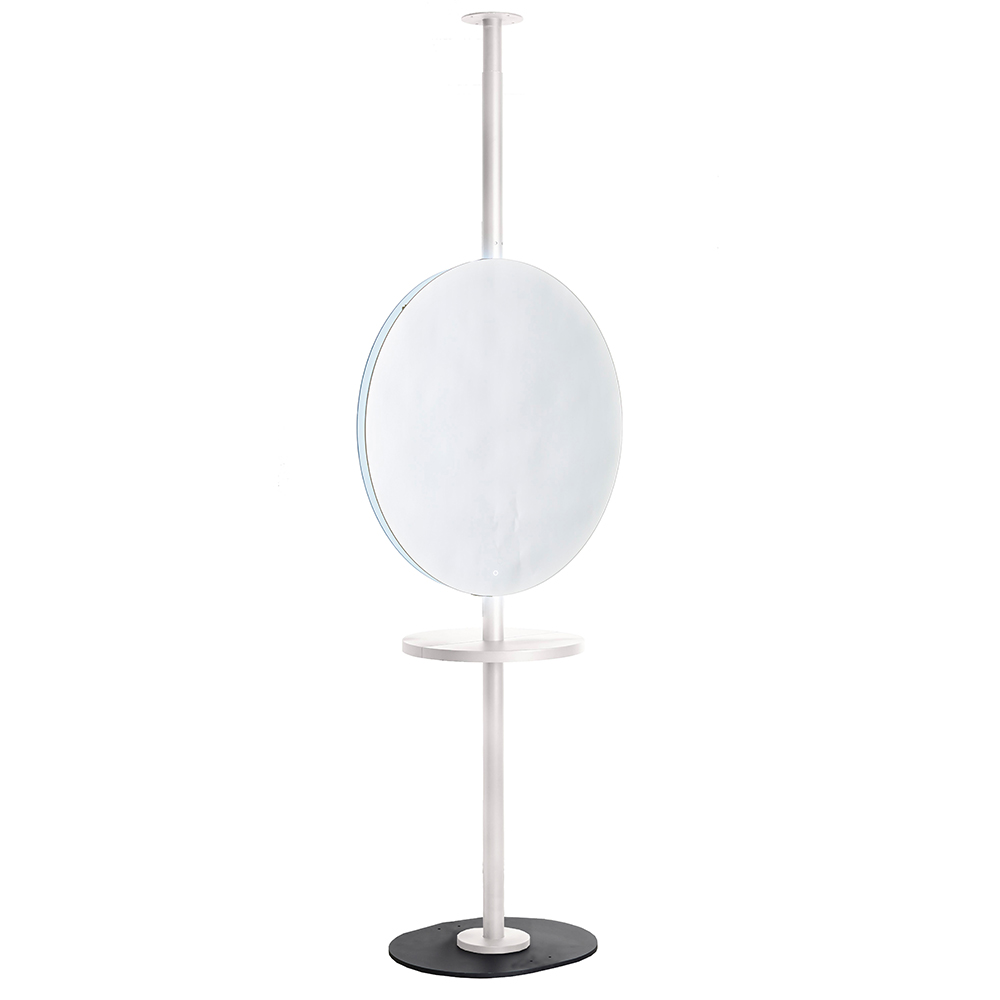 - Modern Aesthetic: The Circa LED Salon Mirror is a stunning focal point against the White Pole Frame.